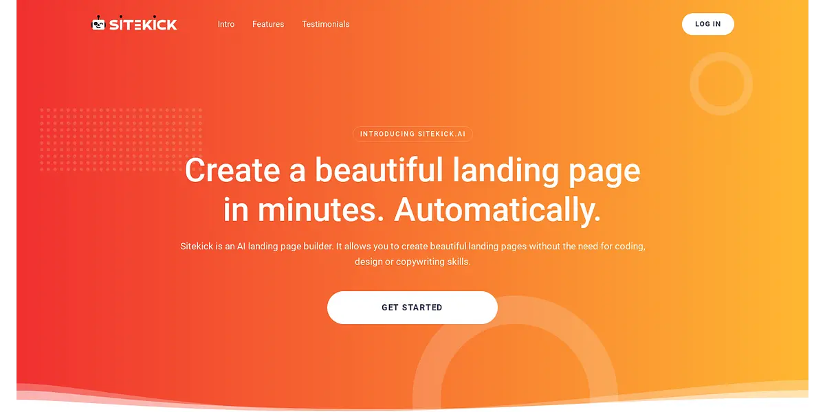 Create beautiful landing pages in minutes with Sitekick.AI