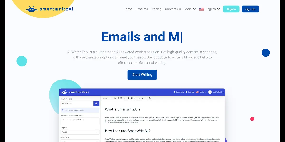 SmartWriteAI is the perfect tool to take your writing experience to the next level! It is an AI-powered writing solution that offers customizable and optimized content catering to your specific writing requirements. With SmartWriteAI, you can write like a pro in no time and say goodbye to writer’s block forever!