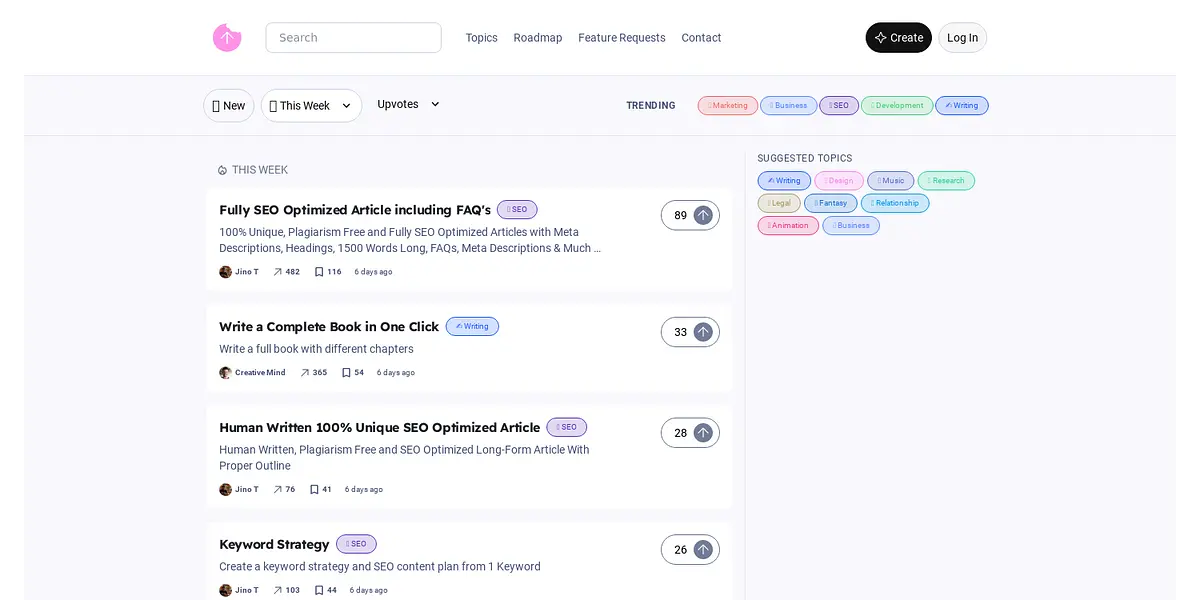 Get fully optimized and 100% plagiarism-free articles with meta descriptions, headings, and FAQs for your SEO needs. Create a content calendar, repurpose your blog posts, develop a keyword strategy, and generate user personas with our expert prompts. Let our AI-powered tools like CoderGPT and Midjourney Prompt take your development, design, and UX/UI to the next level.