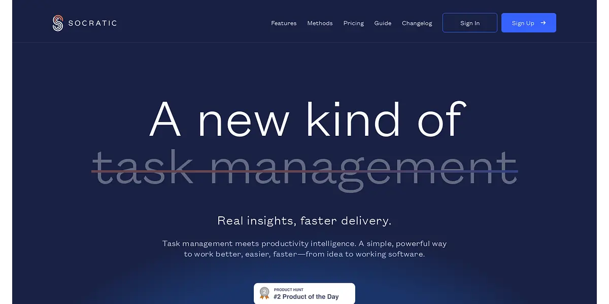 Socratic is a new kind of task management platform, offering a range of features designed to help engineering and product teams work better, easier, and faster. With instant answers, personalized forecasting, and insightful data all in one place, Socratic helps teams stay on top of their work activity while providing a real-time view into health and progress. This eliminates the need for manual rollups and gives teams a true view of capacity and workload. Socratic also provides a range of intelligent forecasting tools, taking the guesswork out of due dates and allowing teams to project durations for every task. With Git integration, Socratic automates workflows and delivers a complete view of code activity and history across all relevant repositories. Socratic also offers a range of smart practices and myth busting content, providing teams with prescriptive, actionable intelligence to help them work better. Trusted by top teams, Socratic is the ultimate tool for those looking to work smarter and deliver faster.