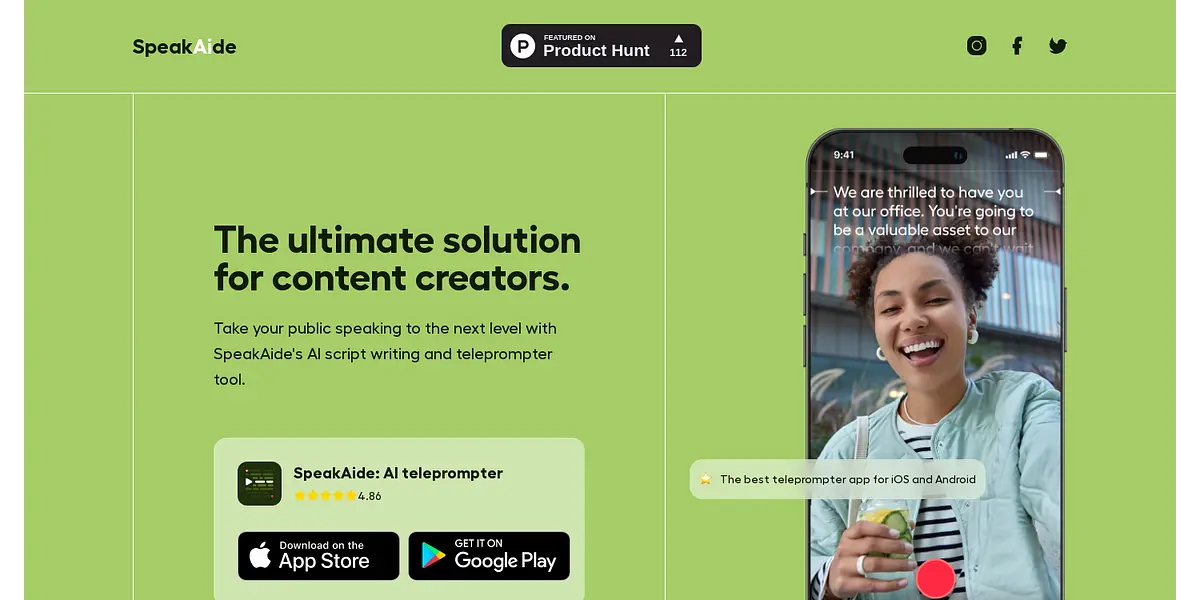 SpeakAide is the ultimate solution for content creators. It provides an AI script writing and teleprompter tool to help improve public speaking skills. With just one click, the AI technology generates a flawless script, and the teleprompter feature ensures seamless delivery.