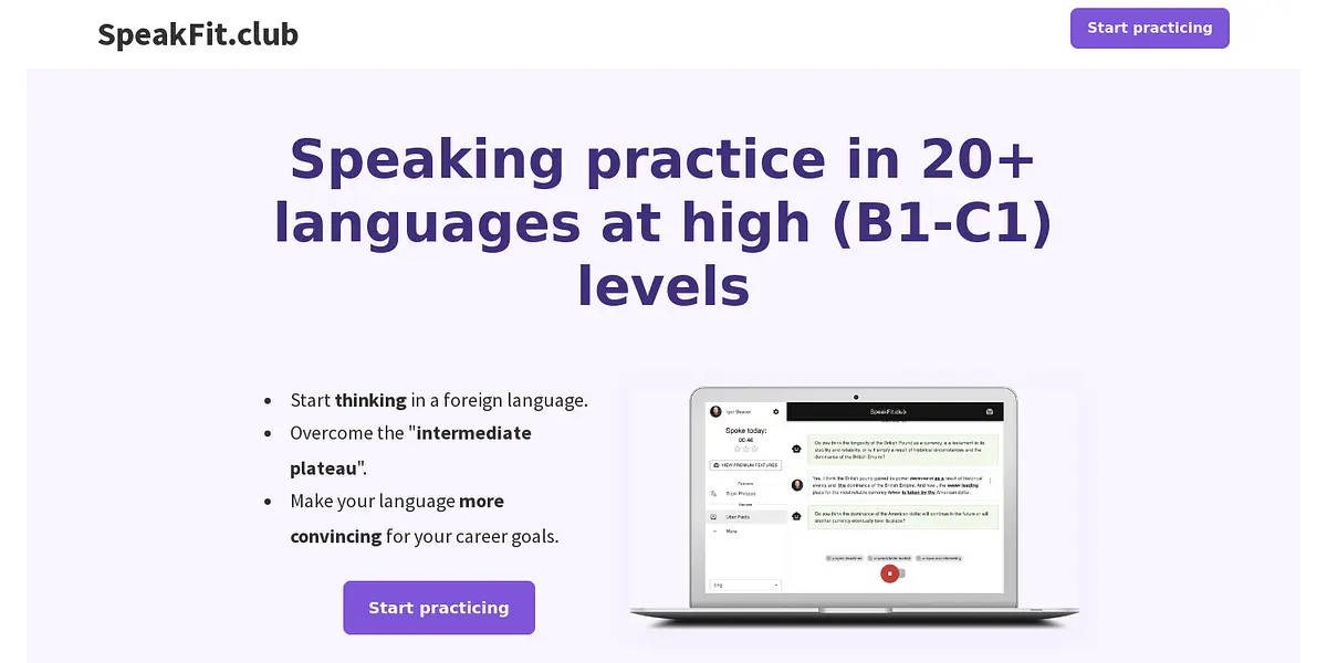Looking to enhance your language speaking skills and achieve fluency? Look no further than SpeakFit.club. This innovative language learning platform is your personalized speaking practice partner that offers high-quality language practice in over 20 languages at levels ranging from B1 to C1.