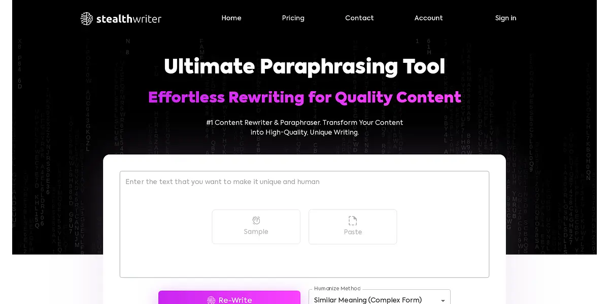 Welcome to Stealthwriter, the ultimate paraphrasing tool to transform your content into engaging, high-quality writing. With our advanced algorithms, we make the task of rewording your content effortless and efficient, resulting in content that is more creative, nuanced, and attention-grabbing.