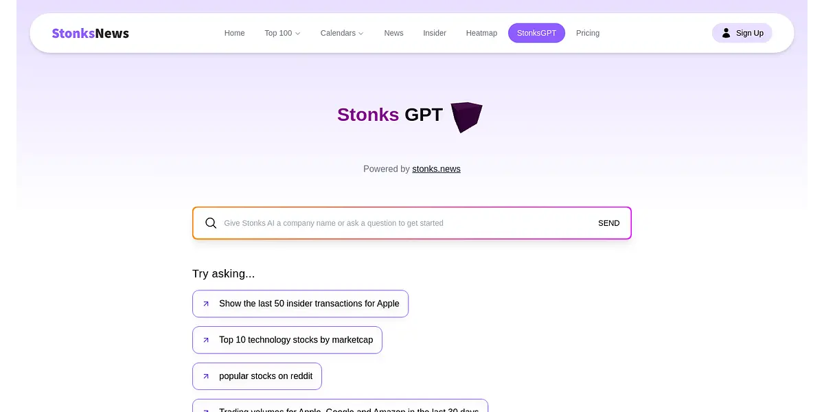 At Stonks News, we understand the importance of staying up-to-date with the dynamic stock market and the best trading strategies. That's why we offer a range of features that you won't find elsewhere. Our top-notch features include Top 100 calendar updates, a News Insider section for all the latest happenings in the world of trading, a Heatmap to show you the hottest stocks in the market, and StonksGPT that ensures you never miss out on the right stocks to trade!