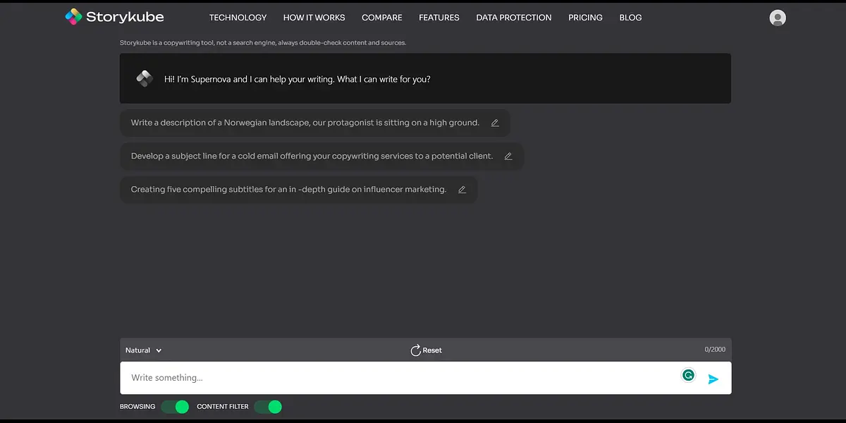 Storykube's interactive four-handed writing process is what sets it apart from other writing tools. When you draft your content, Supernova, Storykube's Artificial Intelligence (AI), works along with you, suggesting possible prompts to help you explore the topic further and stimulate your creativity while writing. It also paraphrases your content to counteract plagiarism and generate unique, original, and trusted content.