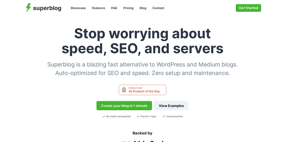 Superblog is the solution to all your blogging troubles. It is an easy-to-use and high-speed platform that gives you an alternative to traditional blogging platforms such as WordPress and Medium. You no longer need to worry about the nitty-gritty of website management as Superblog takes care of it all for you. With automatic optimization for SEO and speed, you can now create lightning-fast blogs in just one minute without any setup or maintenance hassle.