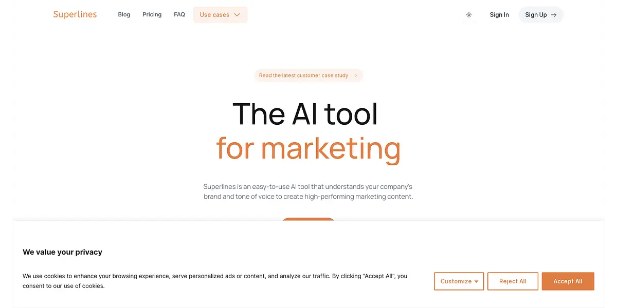 Superlines helps startups, SMEs, agencies, and enterprises achieve their marketing goals with ease. The platform's user-friendly interface makes it easy to customize and integrate your brand guidelines, keywords, and tone of voice to generate content that aligns with your brand identity.