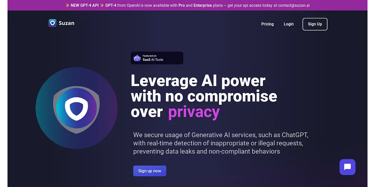Suzan is an AI-specific Data Loss Prevention (DLP) solution designed to secure usage of generative AI services for businesses, such as ChatGPT, with no compromise over security privacy compliance ethics. Suzan's real-time detection system prevents inappropriate or illegal requests, data leaks, non-compliant behaviors, and promotes ethical behavior and policies.