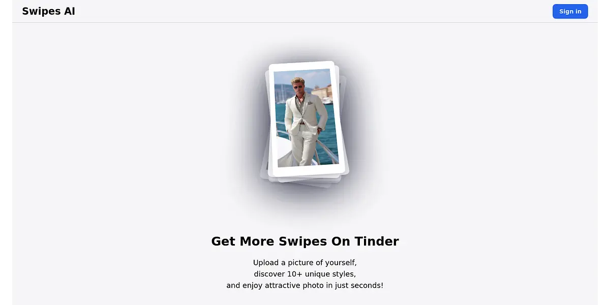 Want to improve your Tinder swiping game? Swipes AI can help! Simply upload a photo and discover 10+ unique styles to choose from in seconds. Sign in now and confirm your email to start swiping with confidence.