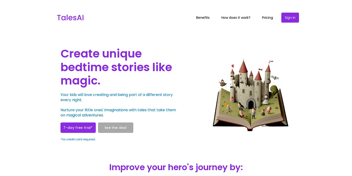 Create magical and unique bedtime stories for your children with TalesAI. Nurture their creativity, language skills and empathy with personalized tales that take them on incredible adventures. Try it now for free!