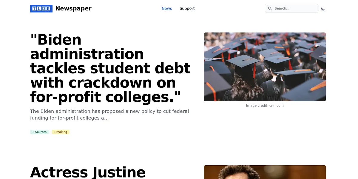 TL:DR Newspaper provides the latest news in a concise and bias-free way. With our AI-powered platform, we summarize news from 60,000 outlets, keeping readers informed and up-to-date with the latest events in the world.