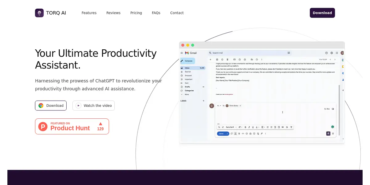TORQ AI is an advanced productivity assistant that revolutionizes the way you work. With its cutting-edge features, including efficient email communication, powerful text processing, and integrated ChatGPT and Google searches, TORQ AI helps you get more done in less time, making you 200x more productive than before.