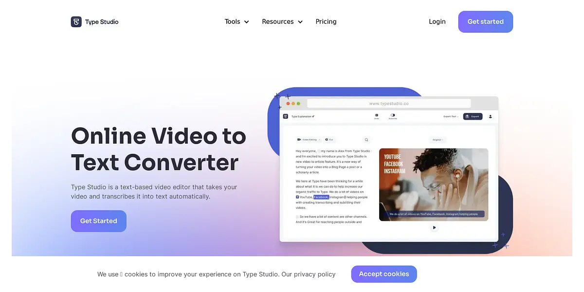 Turn your videos into text-based content with ease on Type Studio.
