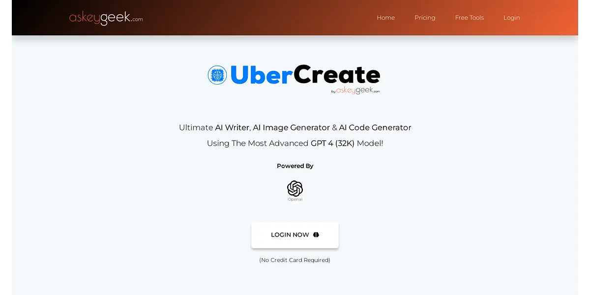 UberCreate - AI Writer, AI Image Generator & AI Code Generator Using GPT 4 (32K) Model. Get started today, no credit card is required!