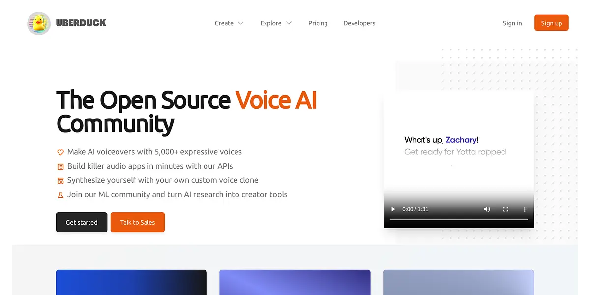 Uberduck is a platform where developers can explore their full potential by building killer audio apps in just a few minutes. The developer-friendly platform provides a 360-degree suite of APIs to choose from, with the aim of providing developers with the necessary tools to create exceptional voice and audio experiences in their apps.