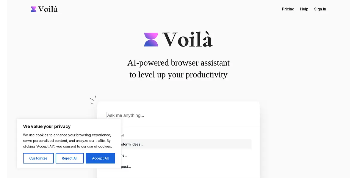 "Get things done with Voilà - Your AI-powered browser assistant"