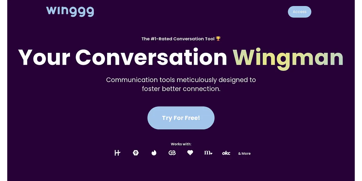 Winggg is the ultimate dating wingman for anyone looking to up their game in the dating scene. This innovative tool provides a range of communication tools all designed to help create better and deeper connections. Whether you are just starting out with dating apps or are a seasoned pro, Winggg can help take your conversations to the next level.