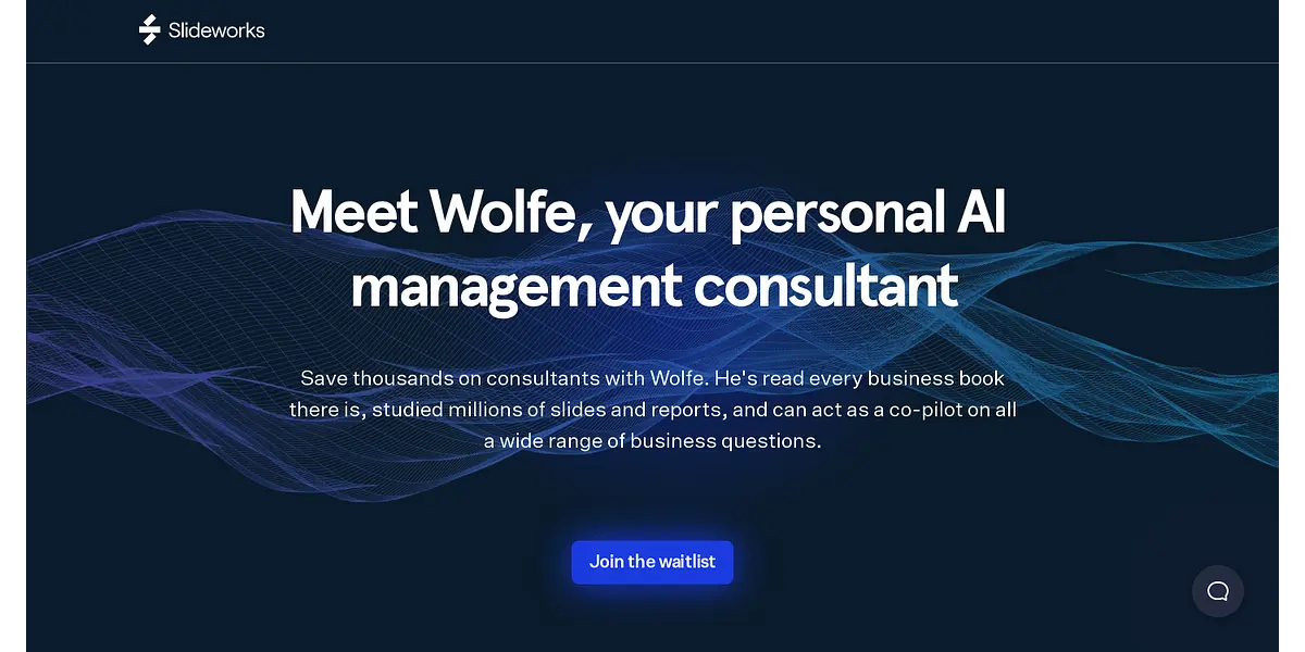 While not publicly available yet, Wolfe is happy to give access to select companies and partners. Join the waitlist to experience the power of AI-powered management consulting and optimize your business strategies like never before.