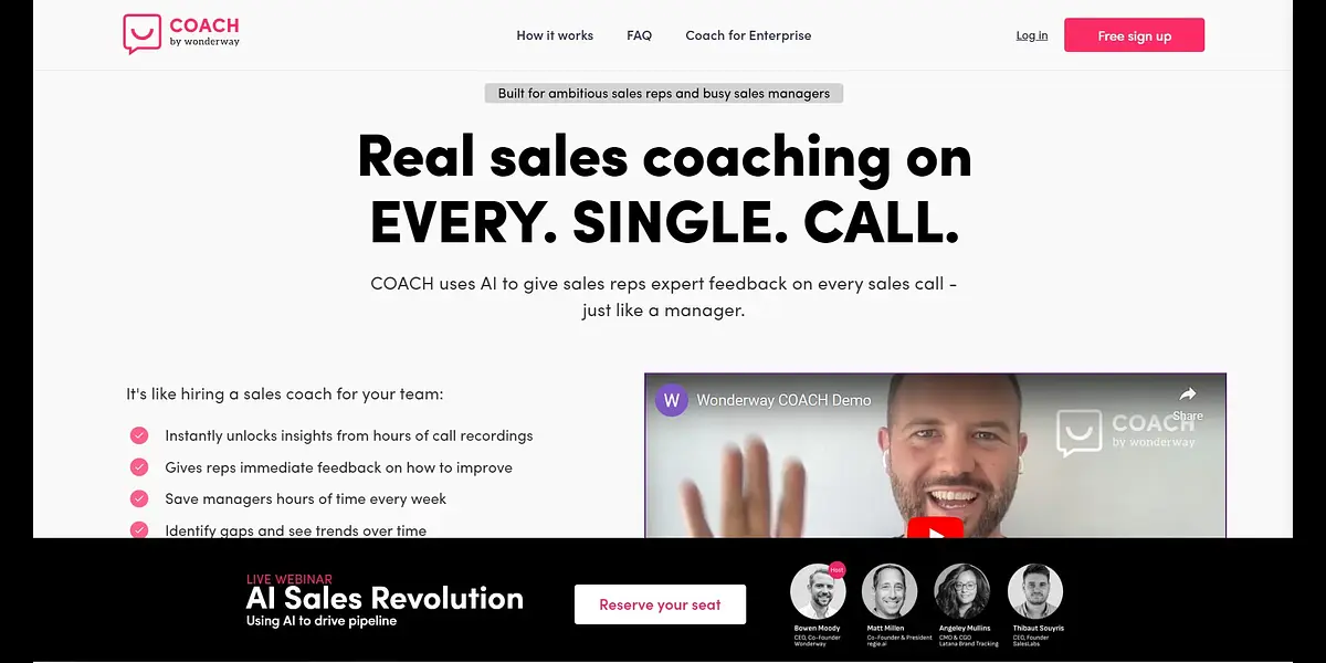 Wonderway COACH uses AI to provide real-time feedback and insights on sales calls, just like a personal coach. It saves time for sales reps and managers and helps them improve their performance, ultimately increasing sales conversion rates and employee retention. Try it for free and see the difference.