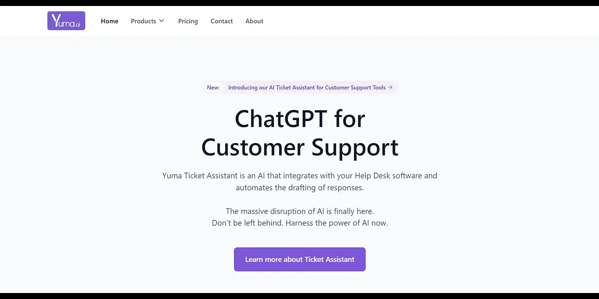 Yuma's commitment to user experience is evident in its support for new product releases in 2023. Join the new AI product launches mailing list to stay informed and receive notifications about new releases. Yuma's privacy policy ensures your data is protected. Streamline your customer support process today with Yuma's AI-powered Ticket Assistant and enjoy the benefits of an efficient, cost-effective, and productive support team.