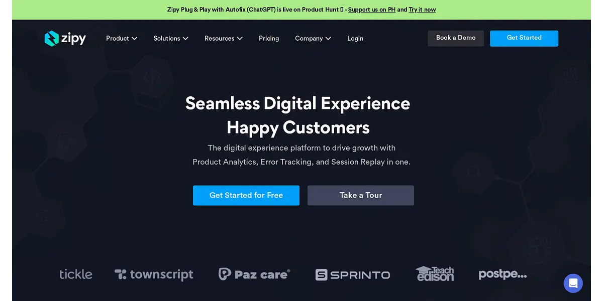 Zipy AI is a digital experience platform that offers product analytics, error tracking, and session replay in a single tool. With Zipy, developers and engineering teams can debug errors, improve user experience, and drive growth, all while saving time and resources.